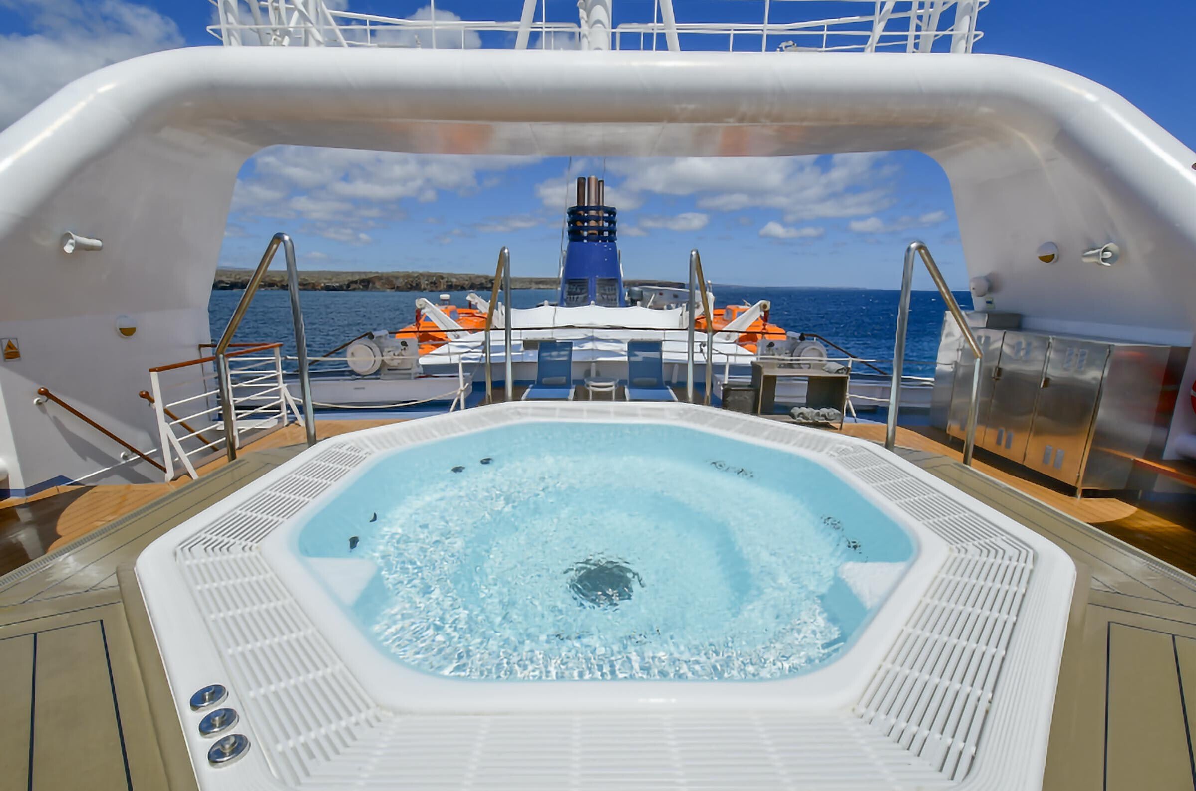 Carrying a fleet of quick-to-deploy Mark VI Zodiacs, a glass-bottom boat, kayaks and stand-up paddleboards, the ship is well-equipped for exploring the islands and marine reserve. It is also stocked with snorkeling gear for all guests, including shortie wetsuits.
