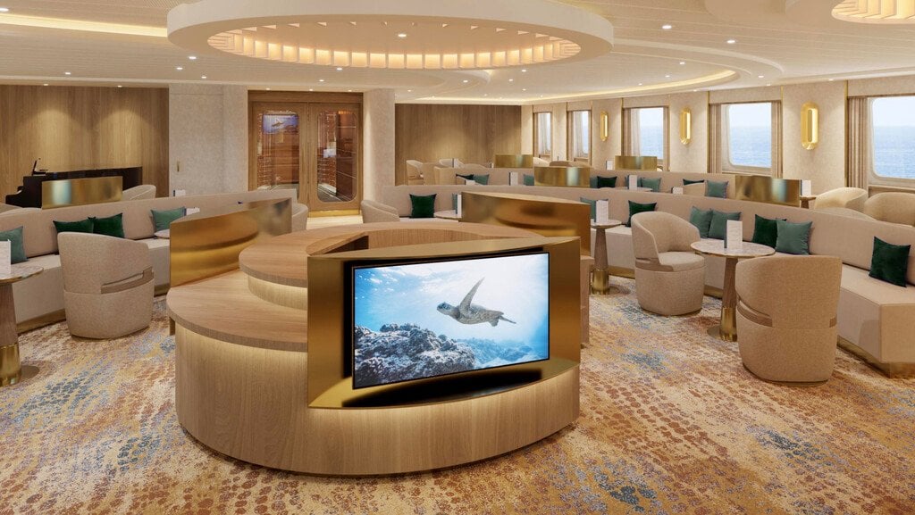 Enjoy the outdoors on the Upper Deck, which features a whirlpool hot tub, and windowed fitness center and spa. An outdoor café on the Lounge Deck accommodates all guests in a single open seating, as does the restaurant on the Marina Deck. The open, windowed lounge for presentations and informal gatherings has a large bar, well-stocked library, and adjacent reception area.