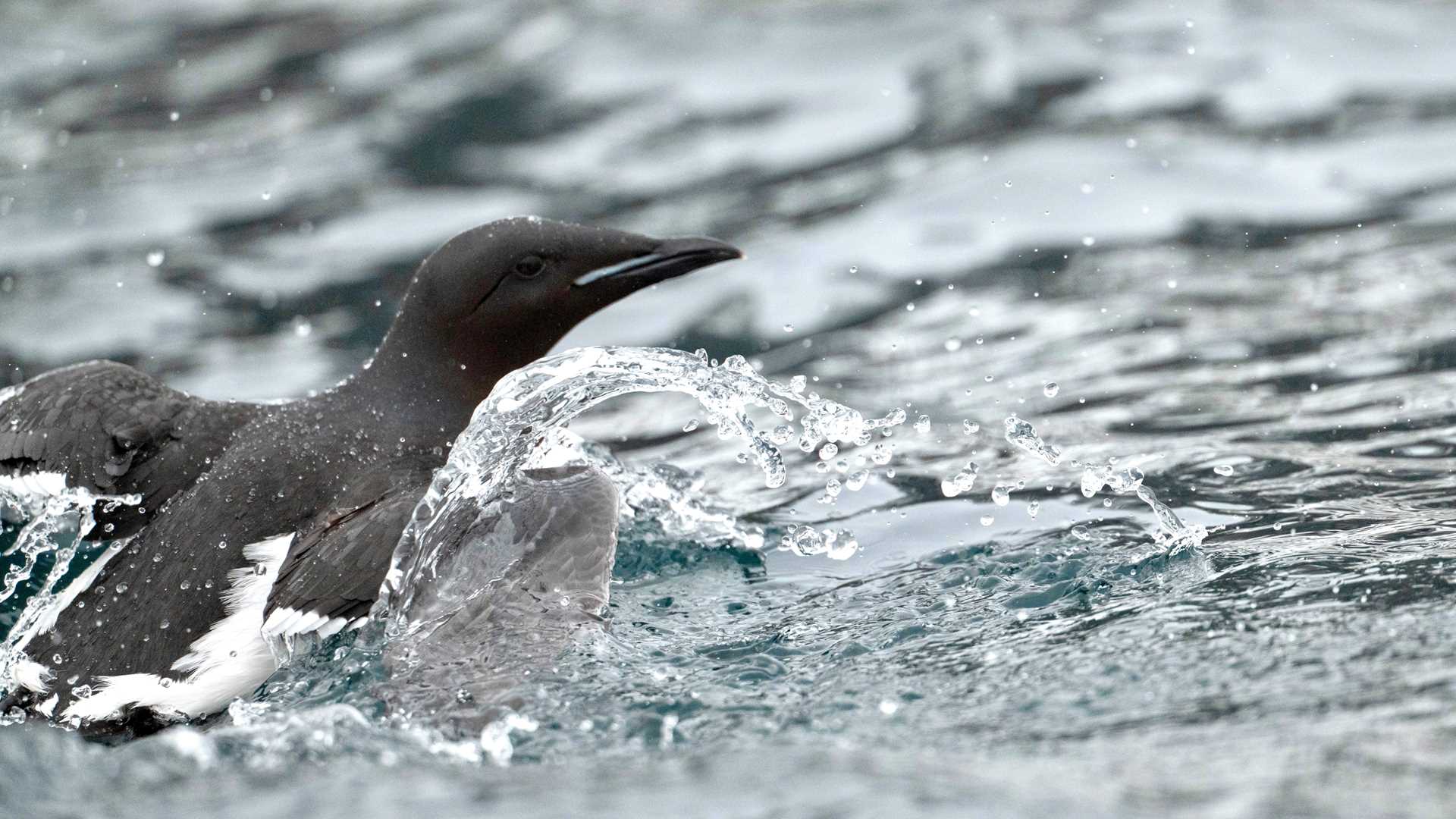 There are few sights as splendid as a bird cliff in full flow, and Alkefjellet is about as good as it gets. Sat on the eastern side of Spitsbergen Island, the cliffs are made up of a dolerite intrusion into a sedimentary layer of limestone. The heat of the magma converted the limestone into a quasi-marble layer, and the resulting effect is a kind of reverse Oreo cookie appearance with a dark chocolate filling surrounded by pale cream biscuit. Having said that, the darker dolerite was today almost hidden beneath tens, if not hundreds, of thousands of Brunnich’s guillemots. These, the most common members of the guillemot family here in Svalbard, have just arrived for their annual breeding season, a brief two months spent on the rocks before returning to their default habitat of the open ocean. Weighing just 600g, or just over a pound, these delightfully smart in appearance birds sport a feathered dinner suit – white belly and black back with just two cute little swirls of white on the rump. Their voices cry in a joking laugh, belying their vicious way of fighting over the narrow rock ledges where they must find room to nest.