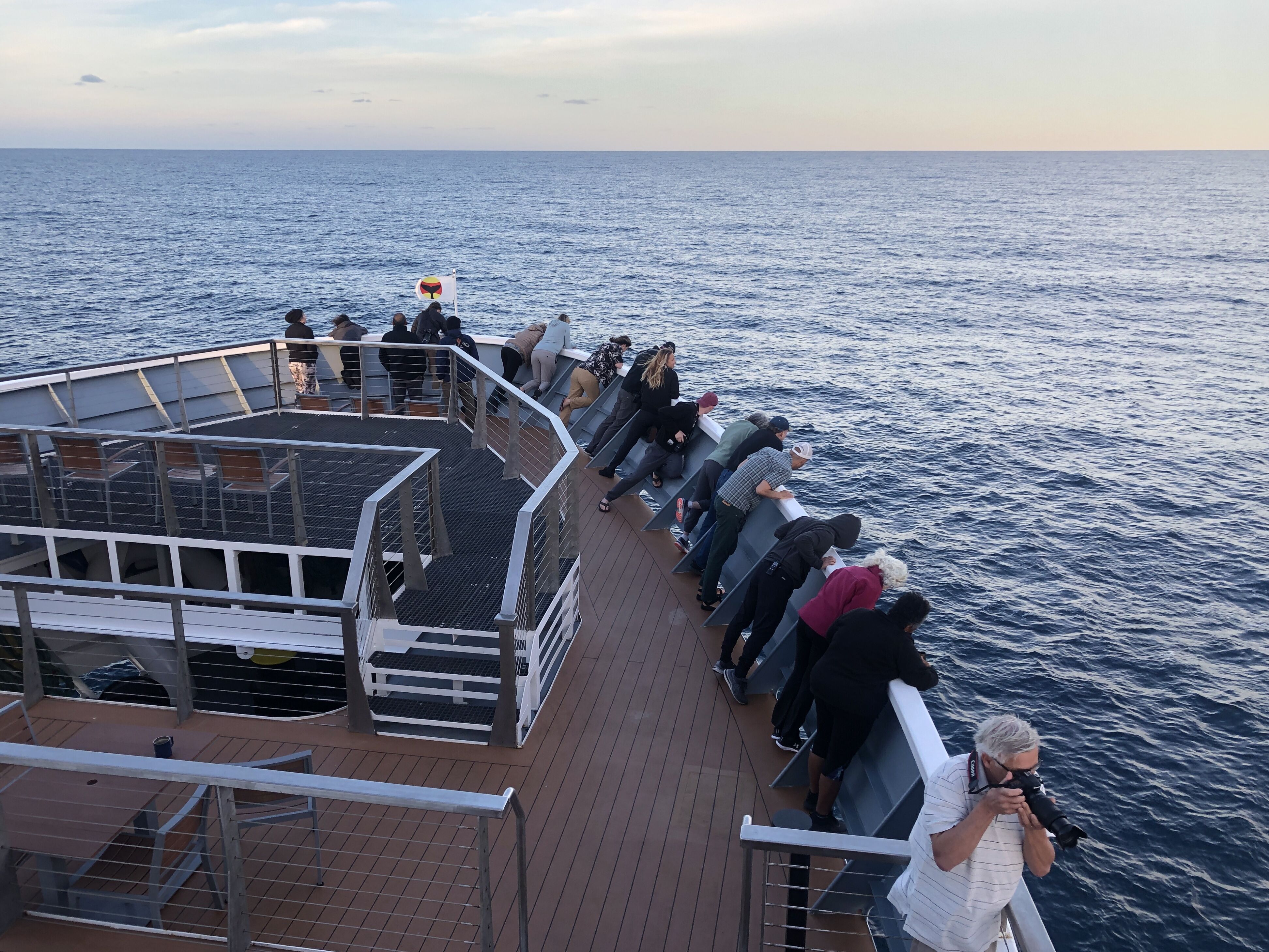 The call on the PA system said “Emperor penguin sighted ahead!” We rushed to grab binoculars and cameras, and to find our favorite spot out on deck. On this ship, we are spoiled for choices from where to watch the local wildlife, but Deck 6 forward is my favorite. A young emperor penguin was watching us from its floe as we approached slowly. It delighted us with its regal looks, stretching here, flapping its flippers there, and even tobogganing across the ice in slow motion, as if showing its prowess to a faithful audience. Before moving on to the next adventure our guest scientist, Dr. Jane Younger, spotted some fresh penguin guano on the floe. Could she collect some samples for the research project she is conducting on board? “Indeed, she can!” said our expedition leader, and soon the two were on a Zodiac. It is wonderful to see a science program in action supported by Lindblad Expeditions, and to share its progress with our guests.