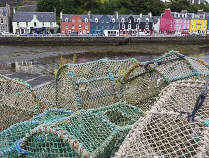 By lunchtime we were alongside in Kyle of Lochalsh and soon heading off in torrential rain for the shelter of famous Eilean Donan Castle. This castle had been in ruins since the Jacobite period but was restored in the early 20th century and is now the family home of the MacRaes. It is one of the most visited—and certainly the most photographed—of all Scottish castles. It was very busy (with other travelers seeking shelter) but we arrived early enough for a guided tour of this impressive building.