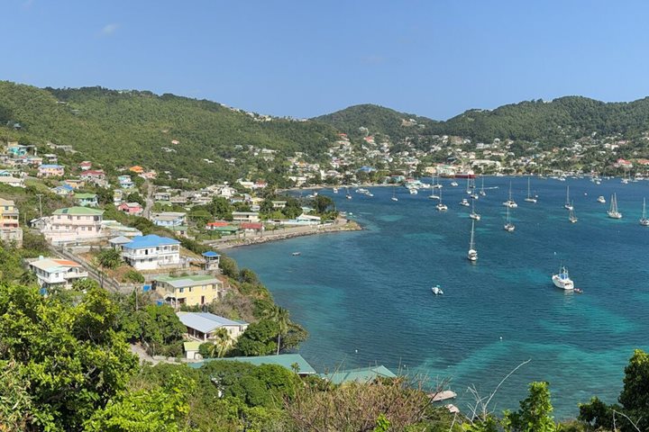 Shortly before lunch we passed the Diamond Rock that occupies a strategic position at the north end of the St. Lucia Straits. Possession of the Rock controls the navigation between Martinique and St Lucia: Because of that Diamond Rock played a big role in the British-French war in the early years of the nineteen century. Our historian Tom Heffernan explained to us why the HMS Diamond Rock is the only rock in the world being saluted today by British navy ships passing by.