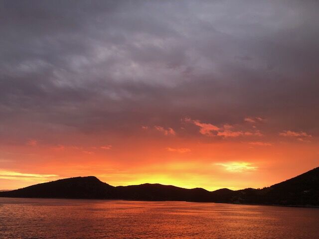 Today’s journey started with a long and relaxing morning during which we caught the bora wind and sailed north from the city of Zadar. As the wind favoured us, Captain Kathryn decided to put the sails up, and we enjoyed watching the sailor climbing and setting sail for our day at sea.
