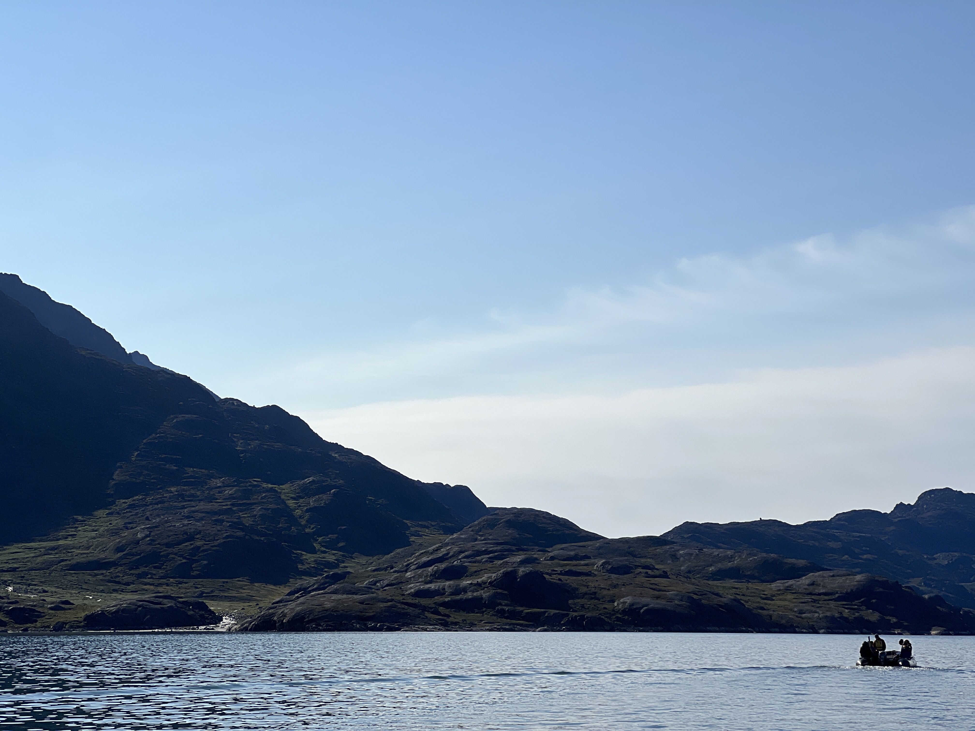 After lunch, Andreas gave a sobering talk about climate change in the Arctic. Shortly after, we went outside to enjoy the warm summer temperatures in Greenland. Just outside Itilleq, on the west coast of Greenland, the fog finally lifted. We went out in the Zodiacs for one last time to explore the majestic fjord environment that surrounded us. What a spectacular end of the voyage.
