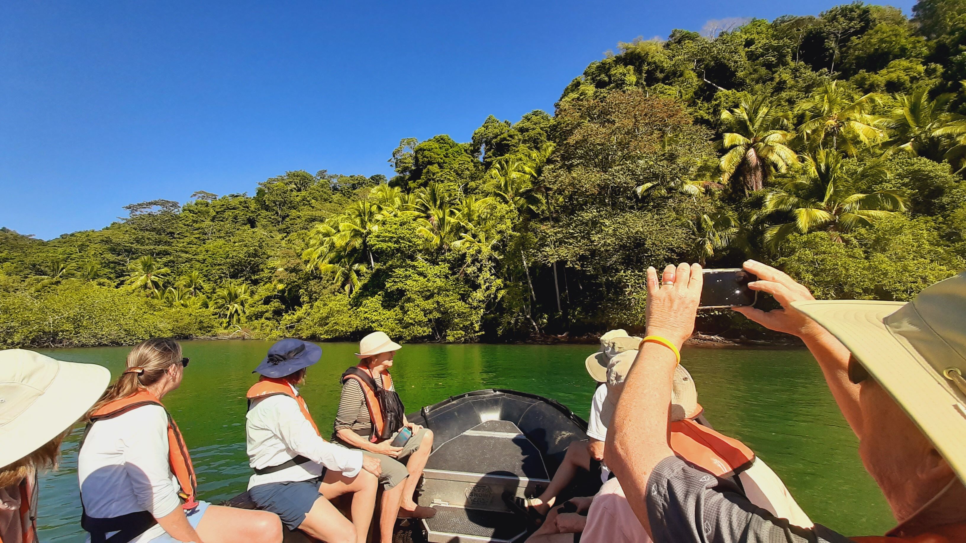 Not just the whales were here to mate. While heading back to the ship, mangroves could be seen littered with magnificent frigatebirds roosting together for breeding season. Male frigates could be seen with a bright red extended throat pouch making it clear they were ready to mingle. But just like the original Valentine’s Day, not all scenes were quite so romantic. A juvenile bald eagle was seen scavenging a pelican, while ravens and a turkey vulture lurked nearby waiting for their turn.