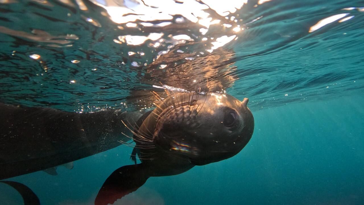Today, National Geographic Venture made its way along the eastern side of the Baja California peninsula north of Loreto. After passing San Ildefonso Island, we encountered a pod of around 300 common dolphins, many of which bow-rided the ship.
