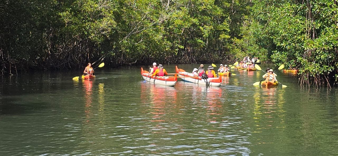 In the afternoon, we ventured into the Palmares Mangrove Forest under a bright, sunny sky. The weather made for a perfect exploration, and we observed a range of bird species, including woodpeckers, herons, and flycatchers. The real highlight, however, was spotting a small American crocodile resting near the water's edge and a couple of crab-eating raccoons resting on the red mangrove trees.