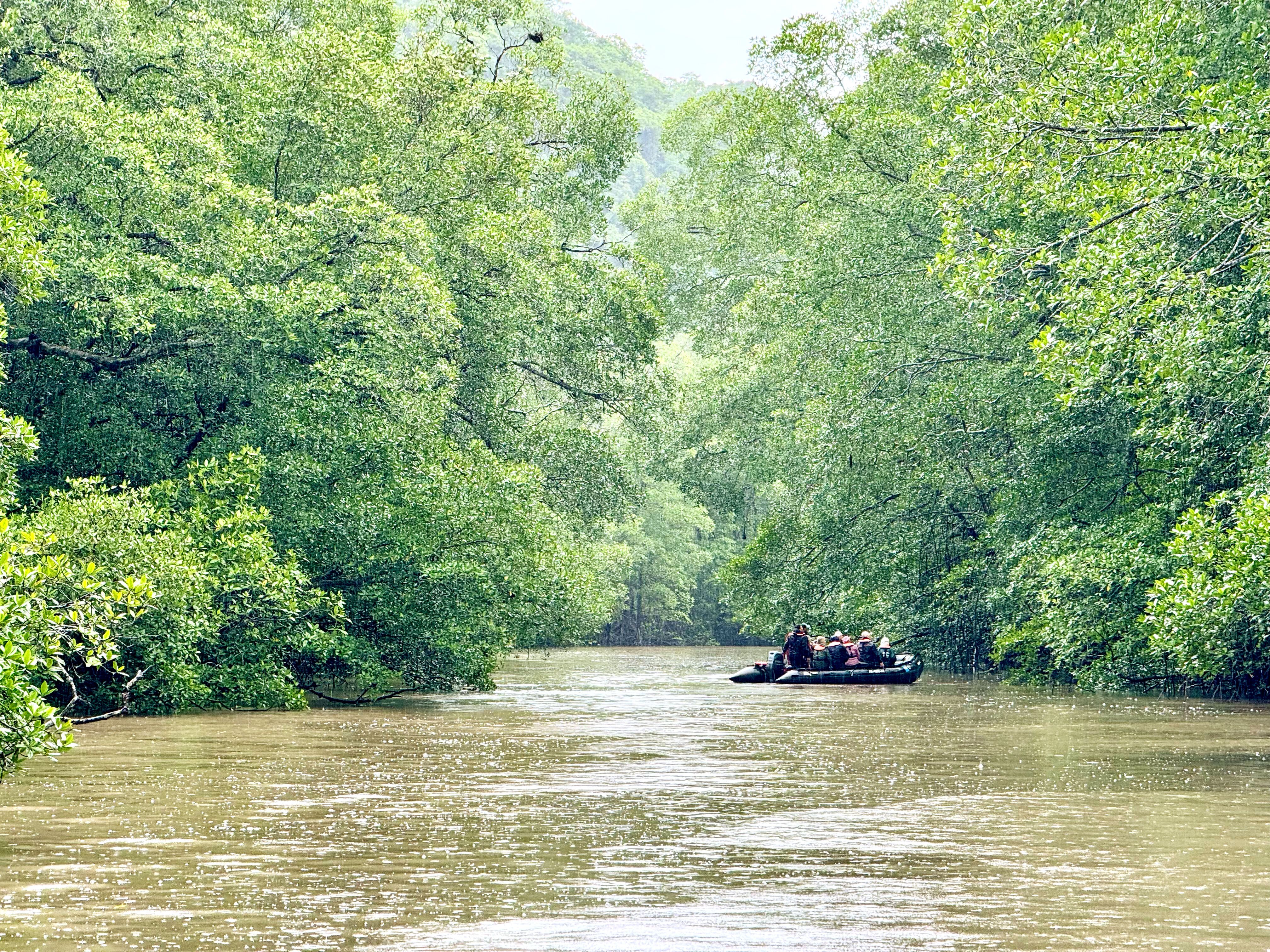 Today, National Geographic Quest visited Bahia Huevos and the Platanares Mangrove Forest. Despite the rain, spirits remained high as guests embarked on Zodiac rides through the lush mangrove channels. We had the opportunity to observe a variety of wildlife, including iguanas basking on branches, parrots flying overhead, and numerous bird species such as herons, egrets, and flycatchers. The vibrant ecosystem of the mangroves provided a unique and memorable experience.