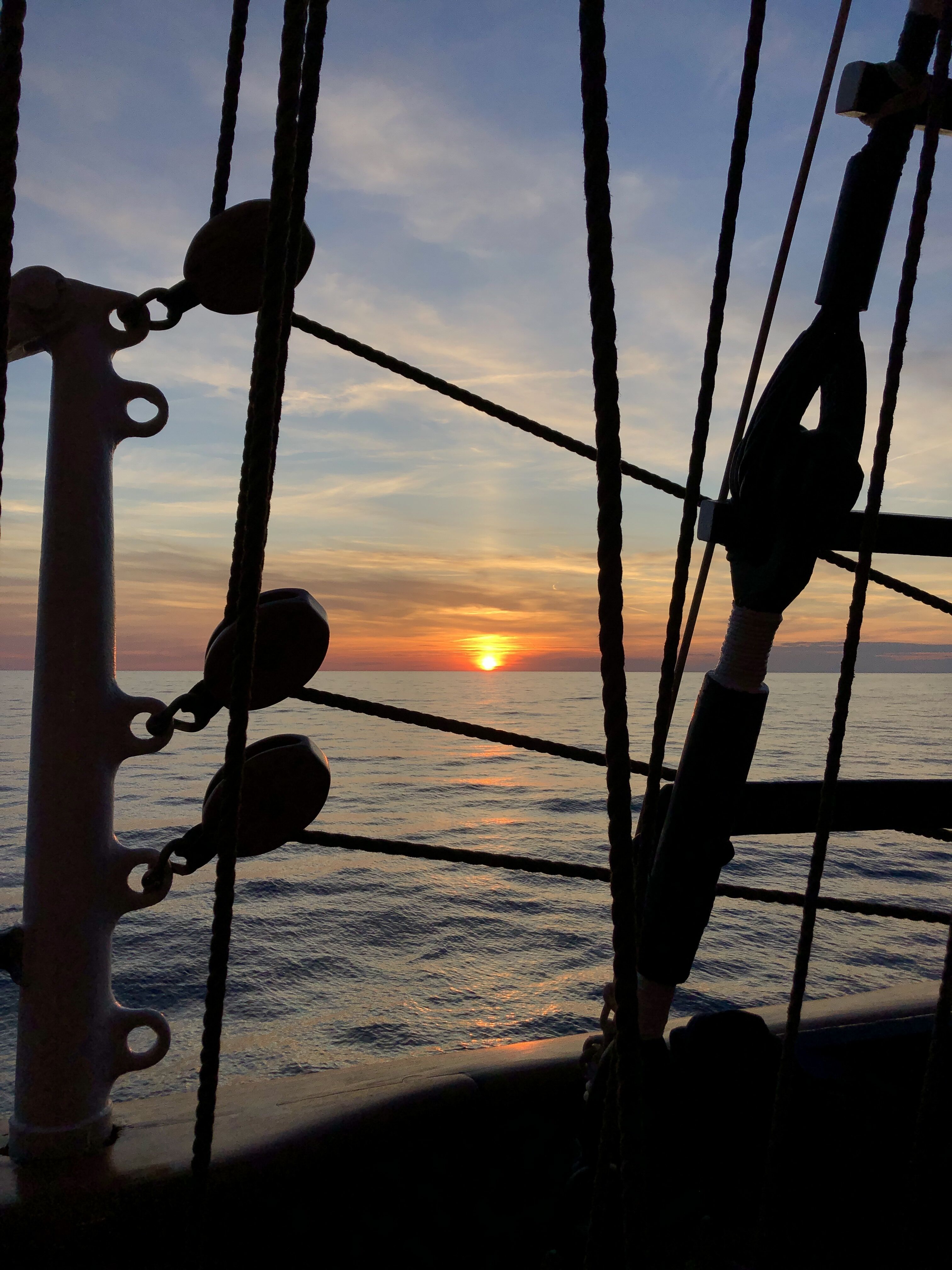 We awoke to near-flat calm seas this morning, with cirrus clouds catching the colors of another gorgeous Mediterranean sunrise. The seas remained calm enough for the captain and crew to set the full sails, creating a stunning opportunity for us to experience a photo safari. The quiet seas also allowed for tours in the engine room, a unique time capsule.