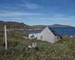 The ship inserted itself as far into the lee as possible between Great Caribou Island and Battle Island, partially freeing us from the winds. She soon hid in the veiling mists while we meandered about the shore. Some of us, aided by Battle Harbour Historic Trust guides, saw two hundred years of fishing history come alive. Others found themselves drawn to the hillsides and colors of fall. Bunchberry carpeted the rounded rocky ridges sharing their abode with crowberry and blueberry upon which whimbrels strode and horned larks flitted. Devoid of their orange aggregate fruits, cloudberry leaves turned to gold and maroon. In valleys, purplish monkshood thrust tall stalks almost shoulder high. All glistened with moisture as if adorned with sparkling jewels. No matter the direction chosen, we all eventually followed our noses to feast on fish cakes and local specialty jams.