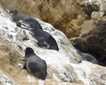 Fingers cold, memory cards loaded with megapixels of memories we turn back to the south. On the way back to National Geographic Explorer we move further off the coastline and drift amongst the rafts of the seabirds. Guillemots are the most numerous and part around our Zodiacs by paddling out of our path. These birds are much better swimmers than fliers. As we get close, many patter or bounce across the surface to evade us, but most choose to dive below rather than flying away. For these auks, swimming and chasing their prey fish underwater means they have small wings and high wing loading. Taking to the sky takes effort and it is easy to imagine why they choose to nest on the towering cliffs. Now we are sufficiently cold and increase our speed and bounce across the sea back to the ship.