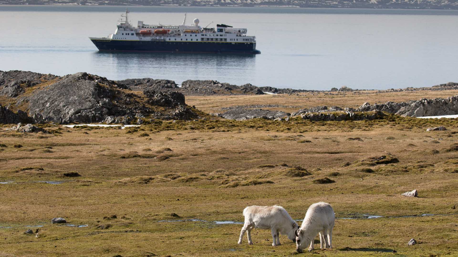 The passengers woke to blue skies, sunshine and the most amazing vista – looking into Bellsund fjord along the west coast of Svalbard. The air was cool from the glaciers that skirted the coastline in this, one of the largest fjord systems of the archipelago. The options for the passengers were to either take one of the long, medium or short hikes; or alternatively, to take a Zodiac cruise along the coast. The landing went smoothly and the warm temperatures in the sunshine were welcomed by most. The scree slopes of the mountains were full of the warbling and screeching little auks or dovekies that use the nooks and crannies of the scree to nest and raise their chicks. All witnessed the noise and beautiful flight of the dovekie, particularly when the colony was flown over by the marauding glaucous gulls. The noise of the dovekies was interspersed with the cries of the Kittiwakes and the honking of both the Barnacle Goose and Pink-footed Goose, who also nest on the cliffs and cliff tops.