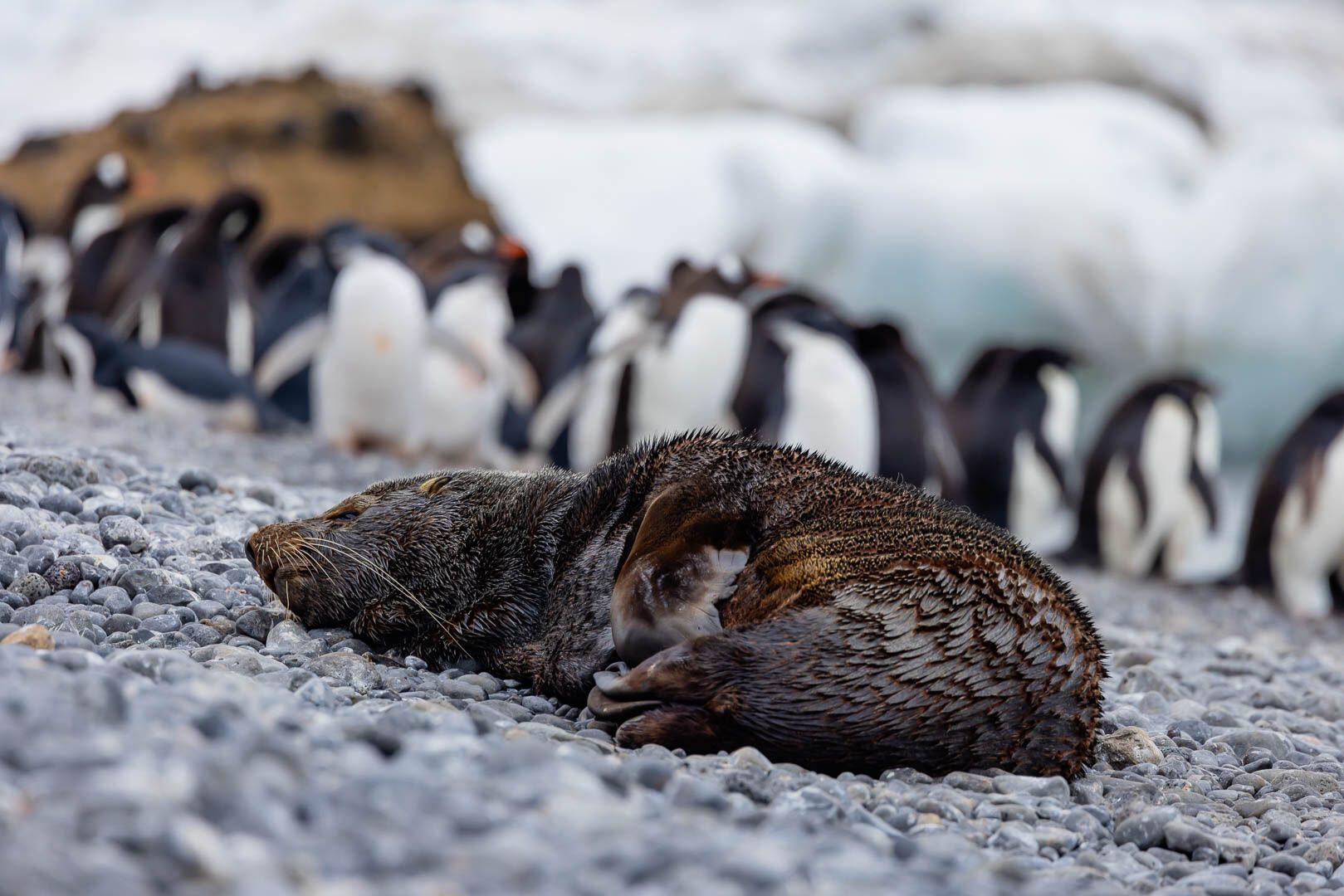 Guests aboard National Geographic Explorer woke up to a beautiful Antarctic morning and the majesty of the towering red-brown cliffs and the lava bomb laden beaches of Brown Bluff on the east coast of the Tabarin Peninsula. After a lovely breakfast, guests went ashore for their first continental landing of the trip. While on shore, they enjoyed the majestic beauty of the landscape and the incredible wildlife that calls Brown Bluff home.
