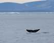 We eventually ended up in Icy Arm, where we found our main quarry … narwhals! There were several small groups of them scattered about in open, deep water, as well as in shallow water along shorelines. It was very hard to photograph them, because of their small size (about 12 to 15 feet or 4 or 5 meters) and quick rolling breaths at the surface made it difficult to focus a camera on them fast enough for a good photo (hence no decent photograph to go along with this report). A few of us think we saw at least one male show his unicorn-like tusk. Some of us observed an interesting phenomenon as individual narwhals swam through the milky river runoff areas near glacial meltwater rivers … we could actually follow their track lines as they stirred clear water from below up through the thin layer of milky surface fresh water. Narwhals are very much at home in deep water found within these fjords, being able to comfortably dive to more than 1,000 meters, but they appeared to be equally happy to inhabit very shallow waters of the glacial river deltas.