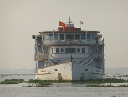 Soft morning light, slowly lighting up the scenery before us, welcomed us to this new day. The lovely smell of fresh coffee invited us outside to see the slow dependable mother’s heartbeat of the region, the flowing Mekong, made visible by the movement of rafts of floating plants – water hyacinth, painting splashes of greenery on the river surface. Social chatting on the open decks over a cup of tea, watching the river come to life - a flock of snow white egrets appearing, elegant wings unfolding and lifting them like feathered angels through the tropical shoreline. We were certainly excited about being out on the water on this, the second part of our South East Asian adventure.