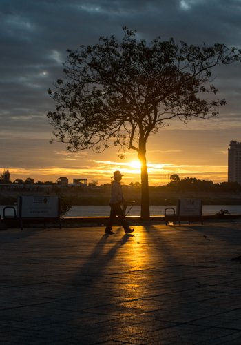 The sun set in a splash of pink during cocktail hour, and after dinner we will watch "The Quiet American."