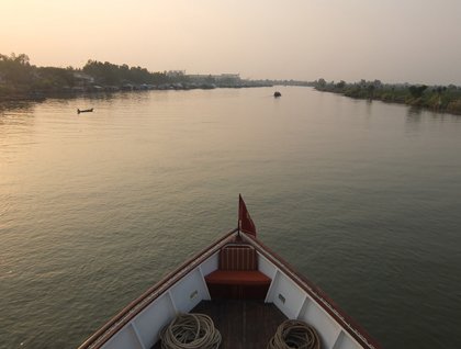 On what had turned into the hottest day on our trip, we returned to the shoreline and toured a flood plain in our best floppy hats. An Eden of fruit and vegetable gardens, the village of My An Hung was a living salad with wood houses for croutons. Steve Egan, our ship naturalist, made the curious, if not regrettable decision to pluck an overripe chili from its vine and bite it in two. I called these "headcount chilis." Each time I added them to my soup I logged their whereabouts to avoid the tear-inducing contortions on Steve's face.