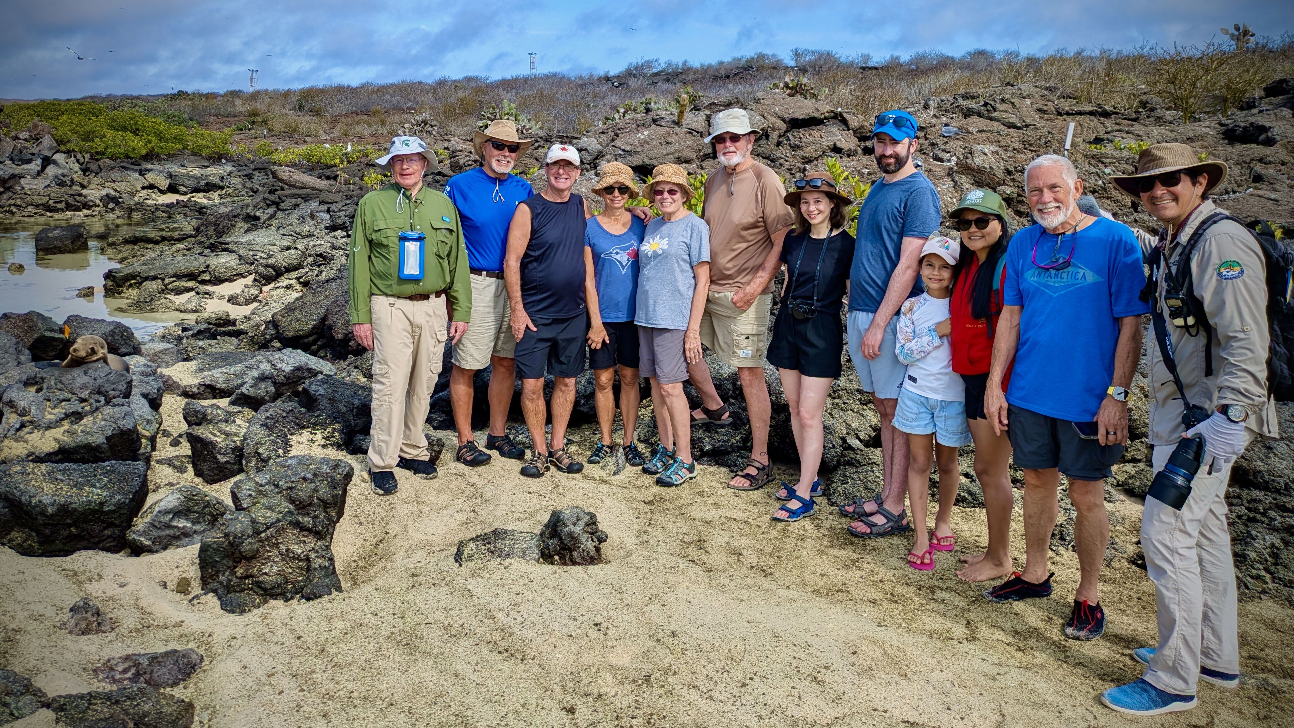 After breakfast, we did water activities. The snorkeling was spectacular, for our guests spotted sharks, manta rays, and other marine life around the turquoise bay of Chinese Hat Islet. The glass-bottom boaters also enjoyed the journey. In the afternoon, we moved to Sullivan Bay on Santiago Island. We walked on a pahoehoe lava field to learn about the geology of Galapagos. The lava is a magical natural museum in front of our eyes. While riding in the Zodiacs on our way back to the ship, we found a flock of penguins and some blue-footed boobies; those sightings were the frosting on the cake for an astonishing day exploring the Galapagos Islands.