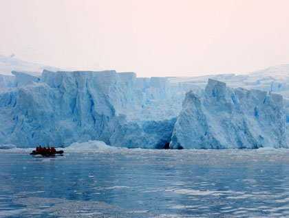 Coming into Enterprise Islands, we saw an old sunken whale factory ship. Tied up to it were three sailing yachts. The early part of the Zodiac tour was damp with rain, but it eased off just in time for us to take in the beautiful icebergs littering the bay.