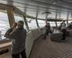 As we left the South Orkneys and headed for the South Sandwich Islands, we started to see blows of whales. First, there were a few blows, then several blows, then more and more blows visible all around the ship. We were sailing in whale soup! Everywhere we looked, whales blew at the surface. On closer inspection, we found that these were fin whales by the hundreds, in addition to a smallish blue whale and a smallish humpback whale amongst the group. The whales were sub-surface feeding on krill in the area. In the collective memories of all staff on board, we have never seen so many fin whales in one spot. It truly was a whale of a day!