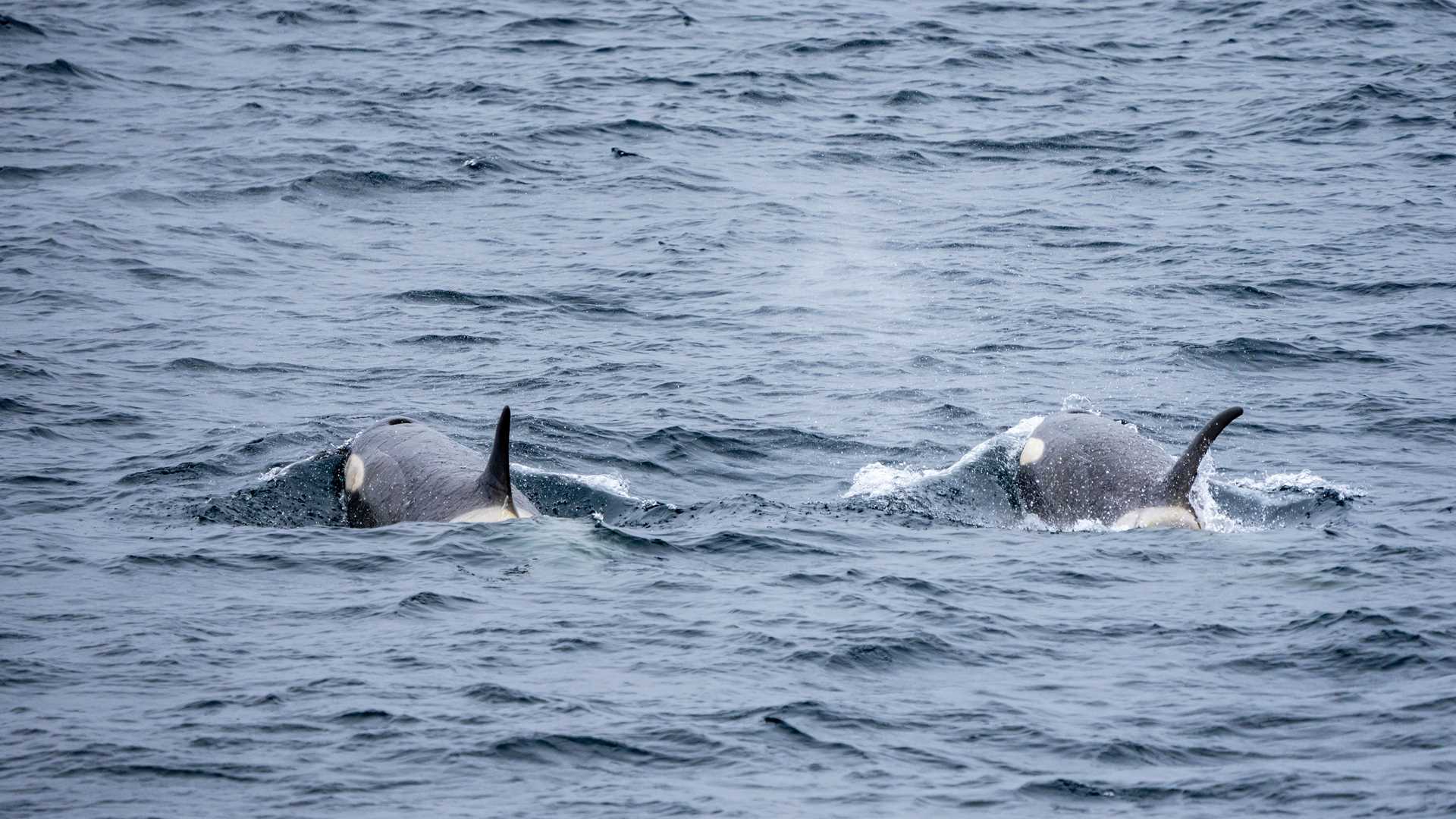 During recap, we were interrupted by a large but dispersed group of B2 killer whales who came very close to National Geographic Endurance and put on a beautiful show.