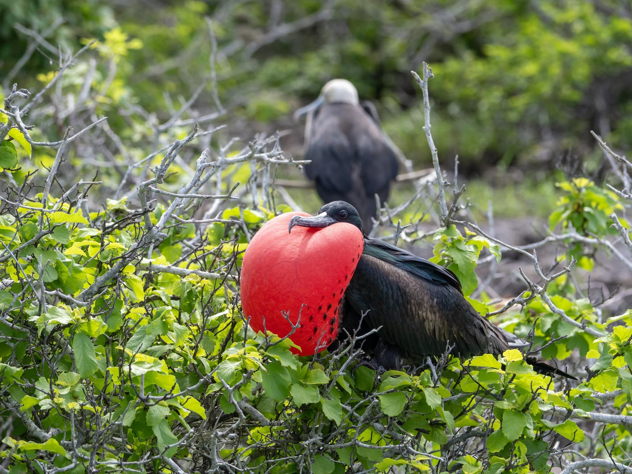 Our first adventure of the day was to visit the mangroves, either by kayak or on Zodiac tours. Naturalists on board the Zodiacs explained the unique ecosystem that sustains different populations of birds and the fisheries that provide a livelihood for communities settled on the bay. Cruising the mangroves, we found different species of herons and egrets, a belted kingfisher, some scrub-jays, and a magnificent frigatebird soaring over the trees.