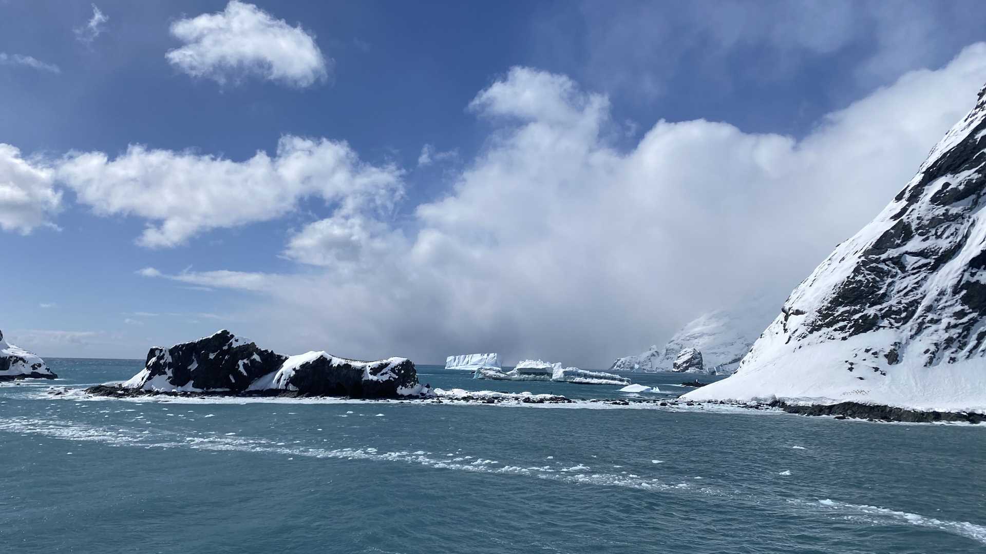 Sailing for three days over very stormy seas, it would have been disappointing not to be able to see Elephant Island and the exact spot where Shackleton left behind the bulk of the crew of the Endurance while he went for help to rescue them in the winter of 1916. For the majority of the morning all we could see was a thick band of fog all around the Endurance, but as we arrived near the Island, the skies cleared, and the winds increased. This afforded us a spectacular view. Small islands covered in screaming gulls and fur seals surrounded the small peninsula where the men wintered in their upturned lifeboats.