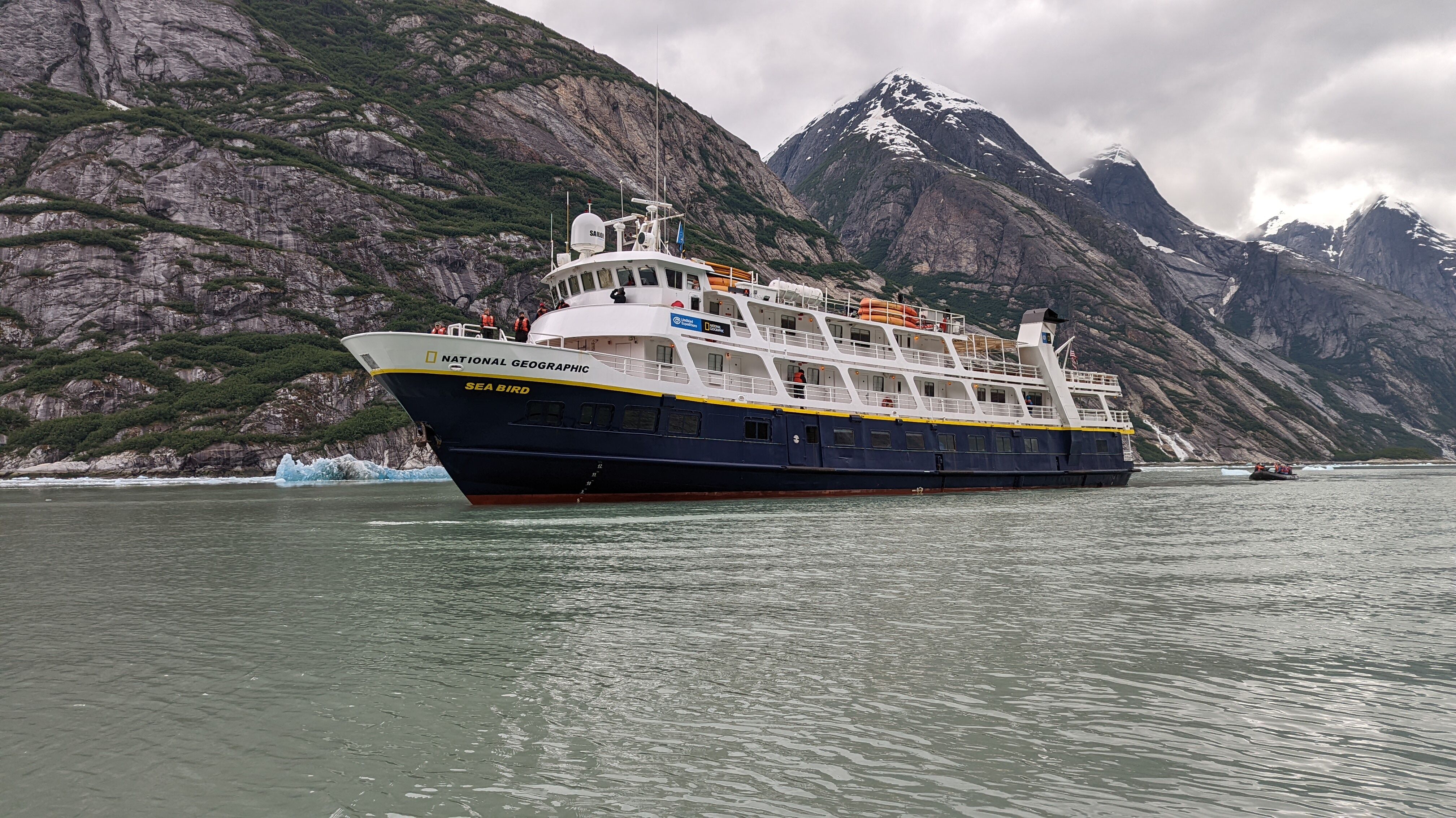 Today, we embarked on a voyage through the breathtaking Endicott Arm, a 30-mile fjord carved by ancient glaciers. As our vessel glided through the jade-green waters, towering granite cliffs rose on either side, with cascading waterfalls fed by melting snowfields. The fjord's serene beauty was punctuated by the occasional splash of harbor seals diving from ice bergs and the distant sight of mountain goats navigating the rugged terrain. Approaching the terminus of the fjord, the awe-inspiring Dawes Glacier came into view. Standing over 500 feet tall and half a mile wide, its icy facade shimmered in hues of blue and white. We boarded Zodiacs to get a closer look, maneuvering through a maze of icebergs, each uniquely sculpted by nature. Suddenly, a thunderous crack echoed as a massive chunk of ice calved from the glacier, crashing into the water below and sending ripples across the fjord—a humbling reminder of nature's power. The journey through Endicott Arm was more than a scenic cruise, it was an intimate encounter with the raw, dynamic forces that shape Alaska's wilderness. The memories of shimmering glaciers, playful seals, and towering cliffs will linger, a testament to the allure of this pristine frontier.