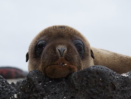 We awaken to a grey morning with the surrounding waters starting to show the turquoise color that Gardner Bay is known for. Snorkelers head to Gardner Island for deep water snorkeling around the islet of Gardner. Invertebrates cover the wall of the submarine island with a kaleidoscope of colors from the soft corals, sea urchins, hawk fish, and black tipped cardinal fish. A young sea lion dives in and decides that we are worth “playing” with. After blowing bubbles at our faces this young sea lion takes various fins into its mouth and tests them to see if they could be worth its playtime. The sea lion decides that a sea cucumber is more amusing then us awkward humans and heads off. After a quick change we head to the fine coralline sand beach where we catch up with our fellow explorers. Kayakers paddle along the coast among pinnacle spires and pacific green sea turtles with the light of the sun starting to break the cloud cover. No less than three hundred sea lions lay upon this paradise as they rest between their foraging runs into the deep. Española mockingbirds flit among us and dig into the sand searching for their daily subsistence. Newborn sea lion pups search for their moms as they blurt out sounds that we would guess translate into “mother.” The sun makes its appearance at last, as we return to our floating home with bright turquoise colors finally showing us that nature has no comparison.