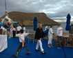 After lunch we navigated Neptune’s Staircase, a series of eight locks that took the boat almost to the edge of the open sea. Fort William was visible across the bay, and Ben Nevis towered above, its summit shrouded in cloud. We disembarked at the bottom of Neptune’s Staircase and headed off to Glenfinnan Monument, the site where Prince Charles landed in 1745 and raised his standard to begin the campaign to restore the Stuart dynasty, which ended in the disastrous defeat at Culloden. A hiking group was dropped off above the Monument to walk across the hills back to Glenfinnan. The route provided the hikers a view of the train viaduct made famous in the Harry Potter movies, and the dramatic Highland scenery around Loch Eil. Others chose to spend their time at the Monument itself on the shores of Loch Eil, where a pleasant nature trail allowed for a stroll through birch forests.