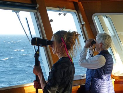As our daily plan always remains flexible enough to allow us to enjoy the occasional sighting of whales or a particularly beautiful sunset before our recap sessions, I’m glad that today we were able to make some time for a short presentation from the scientists after we had invited them for lunch onboard our ship.