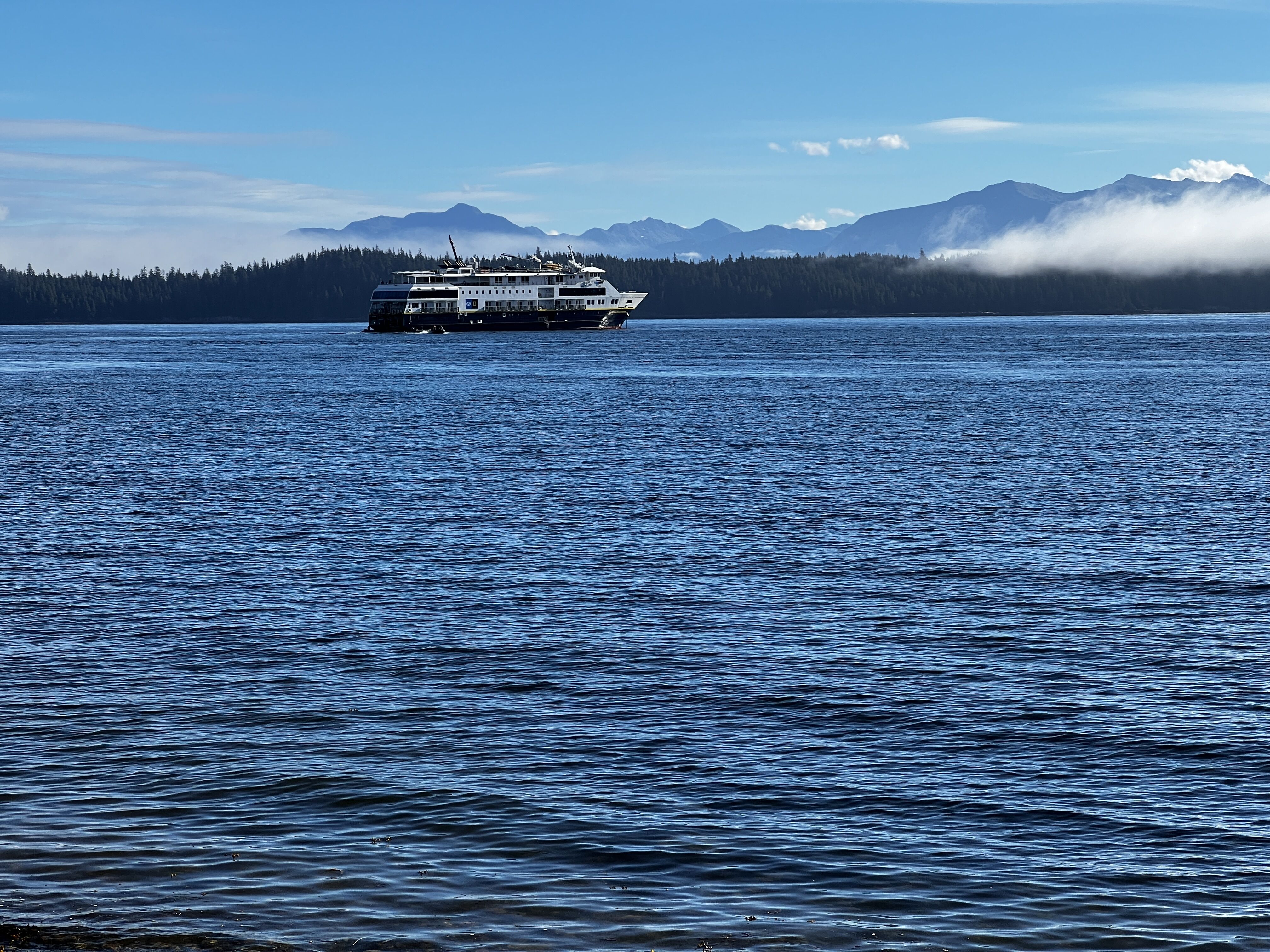 As we made our way to our anchorage off George Island this morning, we awoke to a beautiful low mist moving in and out of the small islands of Icy Strait and Cross Sound. The open Pacific beckoned to the west, and we felt the swell of the ocean for the first time on our trip. After landing on George Island, kayakers and stand-up paddleboarders took to the water as hikers and photo walkers explored the land. A short reposition during lunch landed us a mere two miles away at Hobbit Hole. We were ready to explore the Inian Islands on Zodiac cruises. Sea otters, sea lions, bald eagles, and other types of wildlife were waiting for us on the rocky shores and in the churning waters. It was a lovely day to explore the northernmost entrance to the Inside Passage of Southeast Alaska!