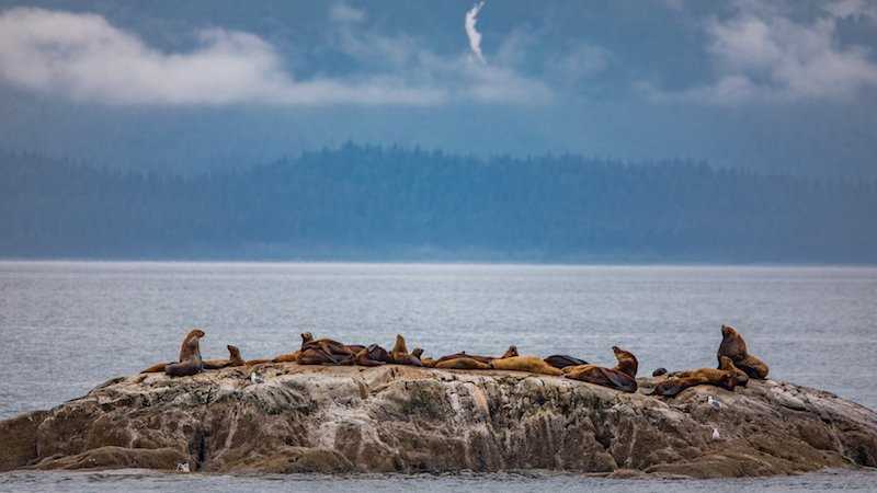 After exploring the glaciers and open waters of the northern Inside Passage, we sailed south through the night and returned to the starting point of our journey, Baranof Island. This island, along with Admiralty to the east and Chichagof to the north, is home to one of the highest densities of brown bears in the world. To search for evidence of the bears as they begin their yearly salmon feast and continue our exploration of the temperate rainforest, we anchored in Kelp Bay to kayak and hike the shoreline throughout the morning. Later in the afternoon, we welcomed Dr. Andy Szabo of the Alaska Whale Foundation to learn more about ongoing research taking place in Alaska on the unique bubblenet feeding behavior we witnessed earlier in the trip. Only in Alaska can you experience the forest, salmon, bears, and whales all in one day.