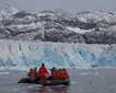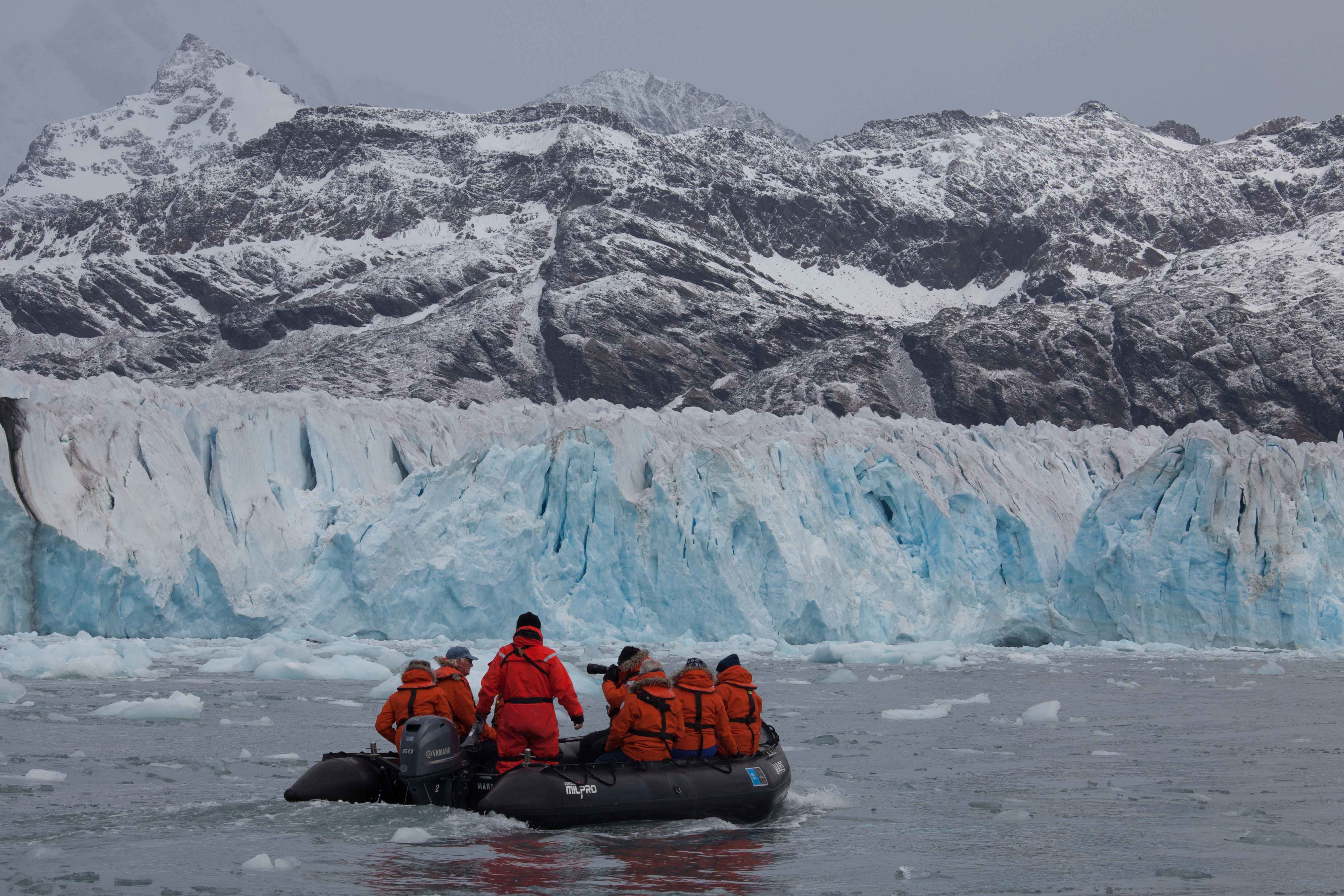 After lunch, we anchored in another scenic bay. Hercules Bay is a protected body of water flanked by cliffs, mountains, and glacial cirques. Both Godthul and Hercules Bay are on the north-northeast side—the wet side—of South Georgia Island. We Zodiac cruised since there was really no place to land.