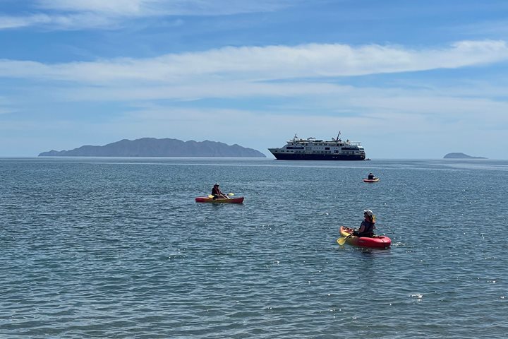 After lunch and a show by the humpbacks, National Geographic Venture anchored at Los Frailes, just south of Cabo Pulmo Marine Park. Mobula rays were spotted jumping out of the water as guests made their way to the beach in Zodiacs. Hikes along the beach were a great way to stretch our legs and feel the waters of the Gulf of California. A dramatic sunset set the scene as we made our way back to the ship for dinner, capping off another great day in Baja California Sur.