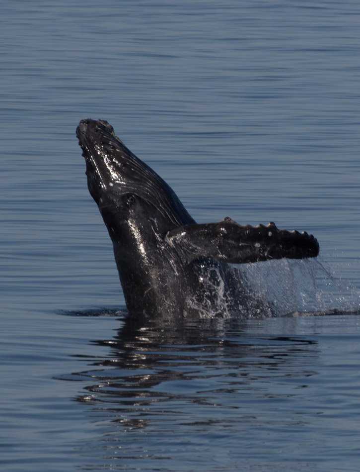 It did not take long before our efforts were rewarded! The waters were perfectly glassy, with beautiful clear blue depth. Humpbacks breached off the bow, mothers with calves and the occasional male escort. After birth, it’s possible that a female humpback whale will fall into estrus so a male will often follow a newly birthed calf around with its mother, hoping that just this has occurred. Occasionally, this escort will get lucky and be rewarded for his efforts with the opportunity to pass on his genes.