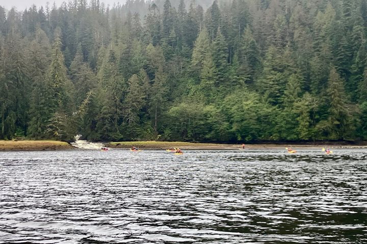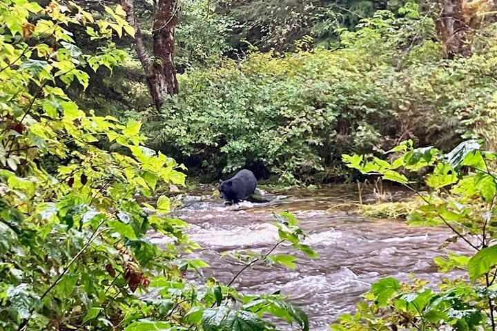 As the day’s grand finale and as the sun was setting, we visited a waterfall and were rewarded with the sight of a couple black (Spirit/Kermode) bears.
