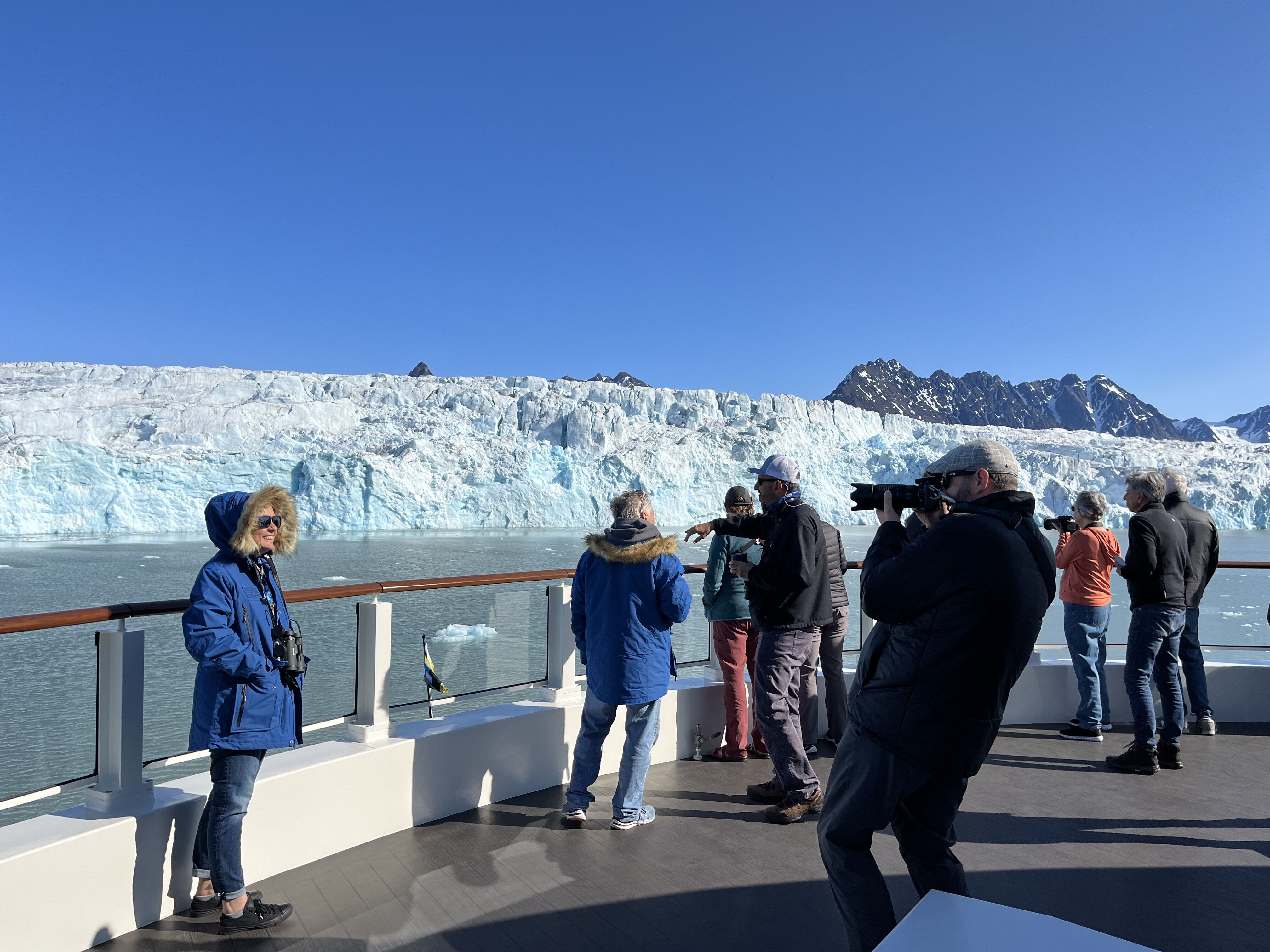 Today, we embarked on a voyage through the breathtaking Endicott Arm, a 30-mile fjord carved by ancient glaciers. As our vessel glided through the jade-green waters, towering granite cliffs rose on either side, with cascading waterfalls fed by melting snowfields. The fjord's serene beauty was punctuated by the occasional splash of harbor seals diving from ice bergs and the distant sight of mountain goats navigating the rugged terrain. Approaching the terminus of the fjord, the awe-inspiring Dawes Glacier came into view. Standing over 500 feet tall and half a mile wide, its icy facade shimmered in hues of blue and white. We boarded Zodiacs to get a closer look, maneuvering through a maze of icebergs, each uniquely sculpted by nature. Suddenly, a thunderous crack echoed as a massive chunk of ice calved from the glacier, crashing into the water below and sending ripples across the fjord—a humbling reminder of nature's power. The journey through Endicott Arm was more than a scenic cruise, it was an intimate encounter with the raw, dynamic forces that shape Alaska's wilderness. The memories of shimmering glaciers, playful seals, and towering cliffs will linger, a testament to the allure of this pristine frontier.