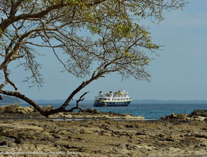 At sunrise we were greeted with calm seas and a beautiful view of the island of Jicarita—a rarely visited and wild part of Isla Coiba National Park. Coiba National Park and the smaller islands surrounding it form the third largest marine park in the world, and have been almost completely protected from development. The palm-fringed rocky shore of Jicarita, with its tide pools, proved to be a photographer’s paradise.