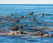 After leaving Sitka yesterday evening, the National Geographic Sea Bird entered the narrow waterways of Alaska's Inside Passage, traversing Peril Strait which separates the large islands of Baranof and Chichagof. A few who stayed up late reported a beautiful full moon. The pull of that moon was evident in the massive tidal range that we witnessed today: a fifteen-foot change from the morning low to the afternoon high. In the early morning, we were in Chatham Strait, along the east coast of Baranov Island, discovering the joy of a steaming mug of coffee on the foredeck, looking for birds and watching Alaska go by. Humpback whales spouted in the distance, rising to the surface to breathe and then returning to the depths to feed. We poked our bow at a beautiful waterfall bringing snowmelt from the mountains above, and we cruised into Kelp Bay searching for wildlife on the shore.
