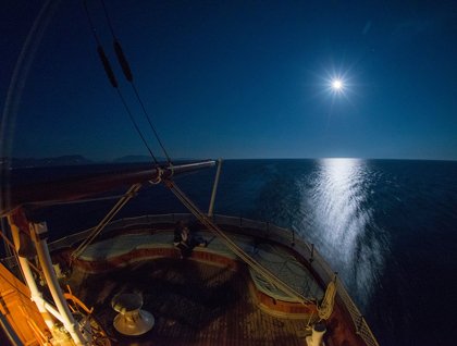During lunch we moved to the end of another branch of Krossfjord. Lillihookfjord is the western branch of the larger fjord and ends in a four-mile-wide glacier front, Lillihookbreen. Glacier watching takes patience but even after sitting for about an hour the glacier did not drop any ice so we turned and progressed out of the fjord. Our plan was to go offshore in search of marine mammals but a strong northerly wind made for difficult spotting conditions. However persistence was rewarded with the sighting of two blue whales soon after the final desserts of Captain’s Farewell Dinner were consumed. An amazing finale to a very special expedition to Norway and Svalbard.