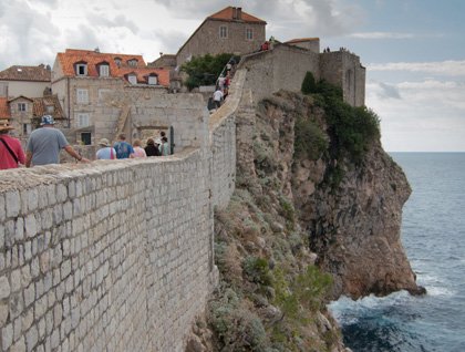 The afternoon was dedicated to discover another side of Montenegro. We boarded the buses and took the “roller-coaster” ride up to the mountains passing 25 turns of the windy narrow mountain road. We had a lot of fun trying to pass by the tourist cars going down as not everyone is such a good driver as the local people. We got to the little village called Njegusi where the famous Montenegrin ham is smoked and cured. We visited the smoke house of our friend Bosko, tried his home-made raki, walked through the field of autumn crocuses and tasted the ham, local cheese, and wine in a little restaurant. Full of excitement we were ready again to take the windy road back down to the ship. That was a surprisingly nice and relaxed afternoon. But on the ship there was another surprise waiting for us—Mali Ston oysters and champagne on the lido deck while we were cruising out in the breathtaking Kotorfjord lit up with the soft light of sunset. Montenegro was one of the most beautiful stops during our trip. We will keep it in mind for a long time….