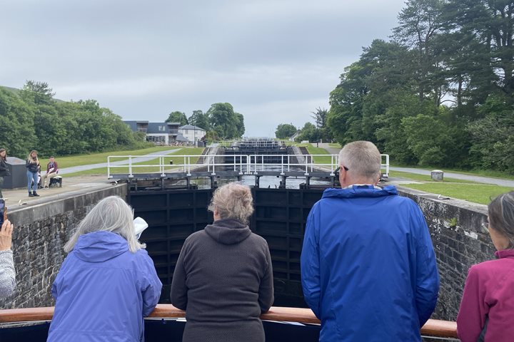We woke to a wet and windy day at the Kyle of Lochalsh, a small town at the base of the bridge to the Isle of Skye. Our first full day on Lord of the Glens was a day for castles, though of a very different character. After breakfast, we set off by bus to the Sleat Peninsula to visit the Clan Donald Centre with the Armadale Castle and Botanical Gardens. This Highland estate is the ancestral home to the MacDonald Clan and has an excellent museum telling the clan’s history. There was also time for a bit of shopping alongside the ferry terminal.