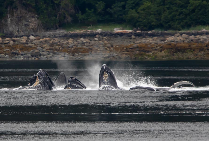 This morning, I overheard a comment from a guest to her partner, who had just joined us on the bow. “I was worried about you, but not worried enough to come find you,” she said. Those of us around her had to laugh. We understood. No one wanted to walk away, fear of missing anything. A very active group of transient (Bigg’s) killer whales captured our attention, moving fast, splashing, hunting, spy-hopping. They had already been preceded by pre-breakfast sighting of humpback whales, and those awake earlier enough saw a salmon shark. Our afternoon comprised kayaking and introductions to the Southeast Alaska rainforest with hikes at Lake Eva. What a day! Another comment overheard on the bow today: “We are setting the bar too high on Day One.”