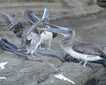 This cloudy morning we rounded Fontur, the northeastern point of Langanes and anchored off Skálar Langanes, a former fishing village on Langanes southern shore, now long deserted and gone to ruins. Perched near the ruined dock is an orange geodesic refuge pod, a place offering shelter and food to the shipwrecked or lost traveler. We took the Zodiac fleet out to cruise along the coast. Precipitous cliffs of layered basaltic lava flows rose above the rocky beaches and a waterfall plunged straight down over the rocks. Some of the basalt flows had columns formed by shrinkage cracks when these lava flows cooled after emplacement millions of years ago. Fulmars and black-legged kittiwakes nested on the cliffs and we saw some tending half-grown chicks and guarding them from a pair of black-backed gulls, predators that cruise along the cliff sides in search of an easy meal. On the water were guillemots, juvenile chicks and their fathers that care for them at sea until they have the skills to live on their own. A few Atlantic Puffins flew by and we saw an occasional Gannet soaring along on long, white, black-tipped wings. Oystercatchers, Purple Sandpipers, and Common Eider ducks were seen on the shore and flying and swimming near the Zodiacs.