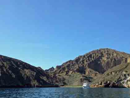 Post-lunch, which was a delicious burger-and-hot dog fest coupled with an ice cream sundae bar on the aft deck, we had a brief kayak informational meeting and then got ready to head off for an afternoon of adventure at Ensenada Grande. Some of us kayaked in the crystal turquoise waters, admiring the amorphous formations of volcanic tuff along the shoreline, while others of us laced on our hiking shoes and braved a three-hour hike up through a rocky canyon before arriving at a saddle with a gorgeous view of the other side of the island. Some of the hikers saw several endemic island animals: the antelope ground squirrel, a striped racer, and a black jackrabbit. A rattlesnake was also spotted. Those that kayaked enjoyed a tranquil afternoon paddling gracefully through the shallow waters. Late afternoon expedition landing craft cruises treated us to a closer look at the red rock formations that make up Isla Partida.