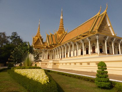 The orange glow of the rising sun peaks over the horizon, and as the night transitions to day, Phnom Penh comes alive with activity. The streets, dark and quiet the night before, are bustling with action. Motorbikes fly by with their loads of fruits and vegetables, meats, fish, and handicrafts for the local markets. Tuk-tuks are everywhere, shuffling people from one location to the next. A stroll along the riverside is the perfect way to start the day before our ship embarks for the Vietnam border. We are surrounded by unfamiliar faces as hundreds of people walk by on their morning commute. Games take place everywhere, and range from volleyball to badminton to soccer in the streets. It’s a whirlwind of commotion, a spectacle not to be missed!