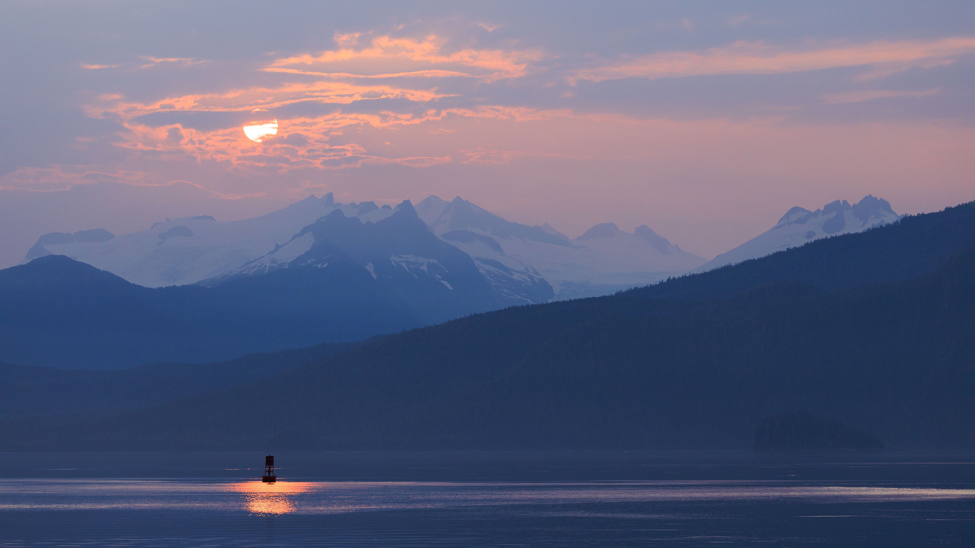 After a hearty chili lunch, we continued through the Behm Canal on our way to tomorrow’s destination, Wrangell. Throughout the day we were surrounded by low-lying smoke from distant Canadian wildfires, creating a beautifully eerie and moody atmosphere. Starting with the sunrise and through to sunset, diffused pink light illuminated the mountains and cliffs around us as we sailed through exceptionally calm waters. We ended the evening with cocktail hour, recaps by our naturalist team, and a delicious dinner by our chefs.