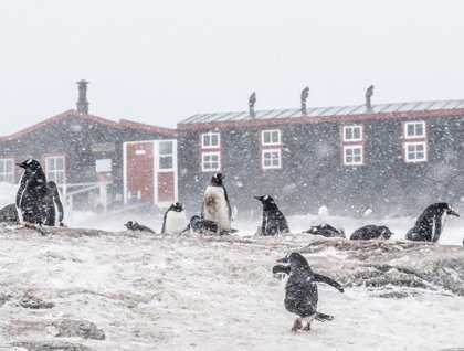 It was an Antarctic Day! After our days of bright sunshine, brilliant vistas, and sunburned noses, we were lucky enough to see and experience another side of Antarctica. A short run from the site of last night's festivities at the U.S. Antarctic Research Program's Palmer Station brought us to Port Lockroy, a well-protected harbor tucked into Wienke Island. Since its discovery by the French Antarctic explorer Jean-Baptiste Charcot in 1903, it has been used by Antarctic explorers to repair their ships and by whalers to process their catch. In 1944, the British established Base A here as part of a wartime effort under the name of Operation Tabarin (the code name Tabarin taken from a bawdy bar in Paris.) The purpose is not altogether clear. Following the war it became a science base used largely for atmospheric studies. Base A was abandoned in 1962 and left to fall into ruins, but then was taken over by the U.K. Antarctic Heritage Trust and turned into an Antarctic museum and the almost-farthest-south gift shop. Proceeds from the gift shop support the preservation of historic huts in this sector of the Antarctic. We did our best to advance that cause!