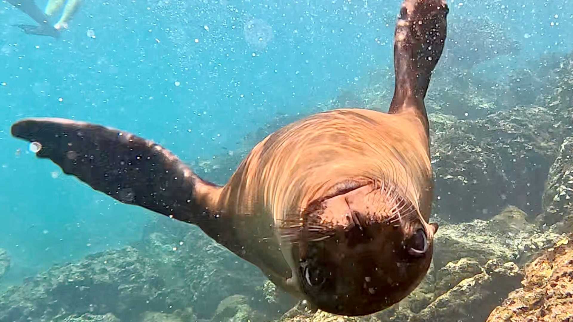 Early in the morning on the first day of our expedition, we were greeted by a pod of dolphins on our way to Rabida Island. Located in the center of the archipelago, Rabida holds an incredible variety of wildlife, including flamingos, oyster catchers, Galapagos doves, lava lizards, and marine iguanas. After breakfast, we departed for our snorkeling outing. Playful Galapagos sea lions, whitetip reef sharks, and many species of fish joined us in the water. It was a wonderful morning!